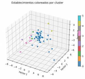 Para esto utilizamos técnicas de análisis que reducen la complejidad de los datos y permiten visualizar la estructura real que hay detrás. En cristiano: pasamos de miles de combinaciones tienda-producto a mapas que muestran clusters de establecimientos con comportamientos parecidos.